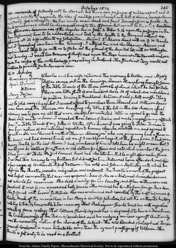 John Quincy Adams diary 36, 1 January 1825 - 30 September 1830, page 285