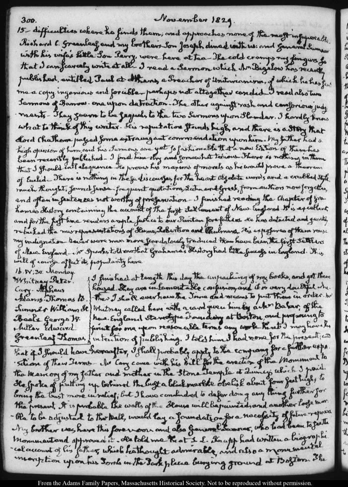 View full, authoritative transcriptions with page images of the diaries at John Quincy Adams Digital Diary part of the Primary Source Cooperative at the MHS.