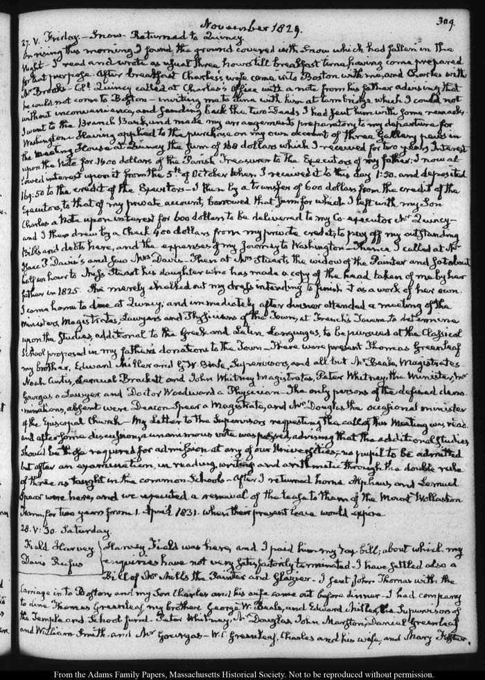 John Quincy Adams diary 36, 1 January 1825 - 30 September 1830, page 309