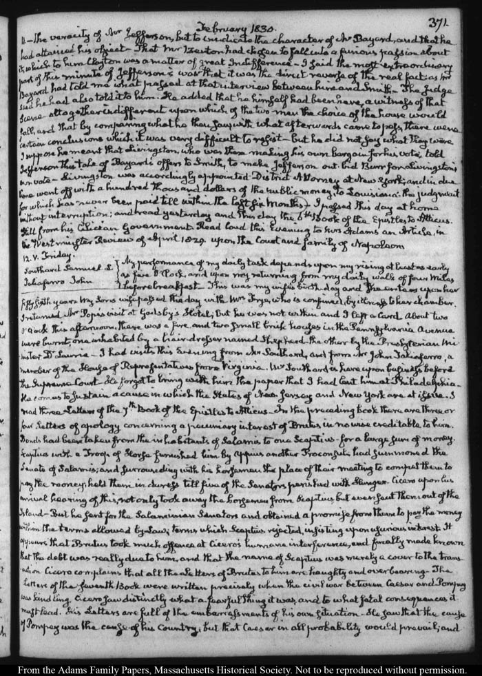 John Quincy Adams diary 36, 1 January 1825 - 30 September 1830, page 371