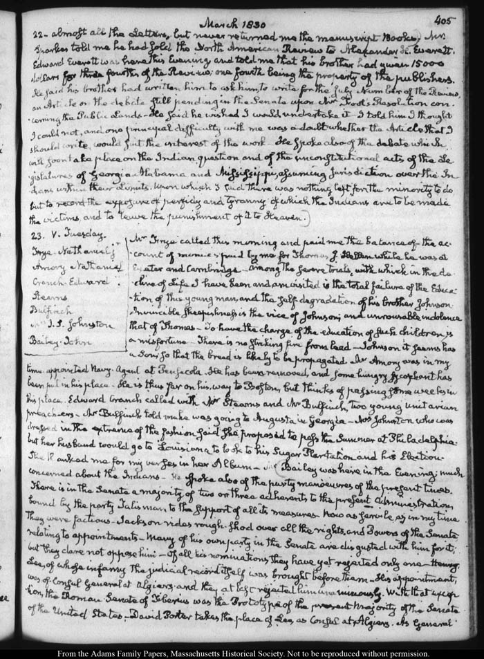 John Quincy Adams diary 36, 1 January 1825 - 30 September 1830, page 405