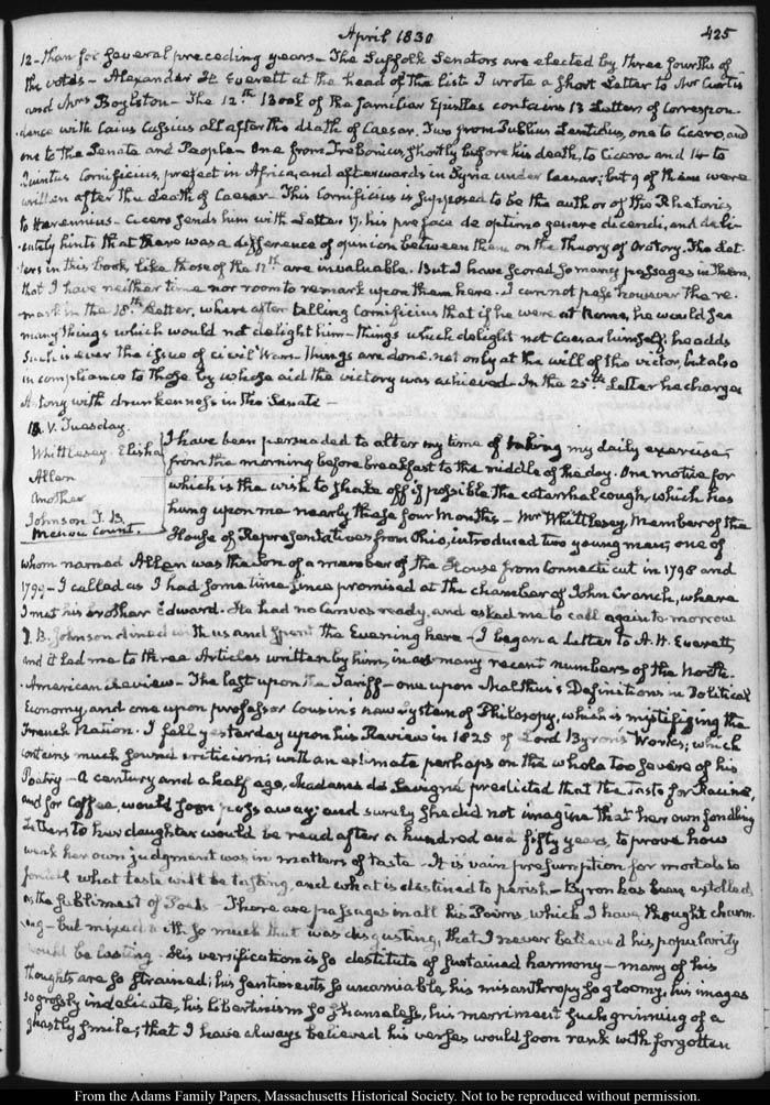 John Quincy Adams diary 36, 1 January 1825 - 30 September 1830, page 425