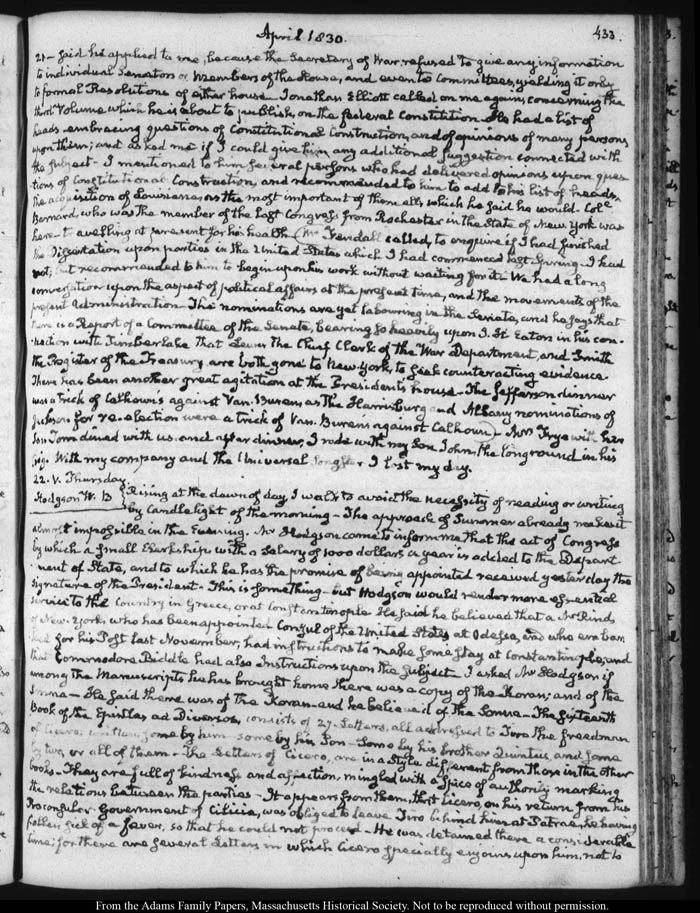 John Quincy Adams diary 36, 1 January 1825 - 30 September 1830, page 433
