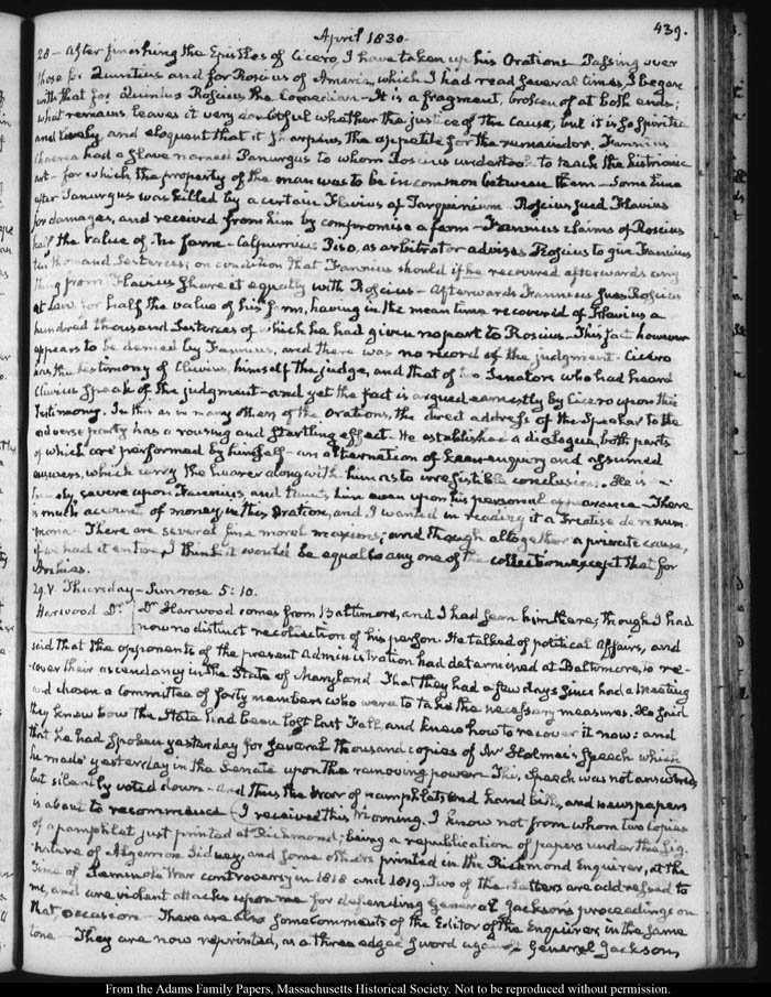 John Quincy Adams diary 36, 1 January 1825 - 30 September 1830, page 439