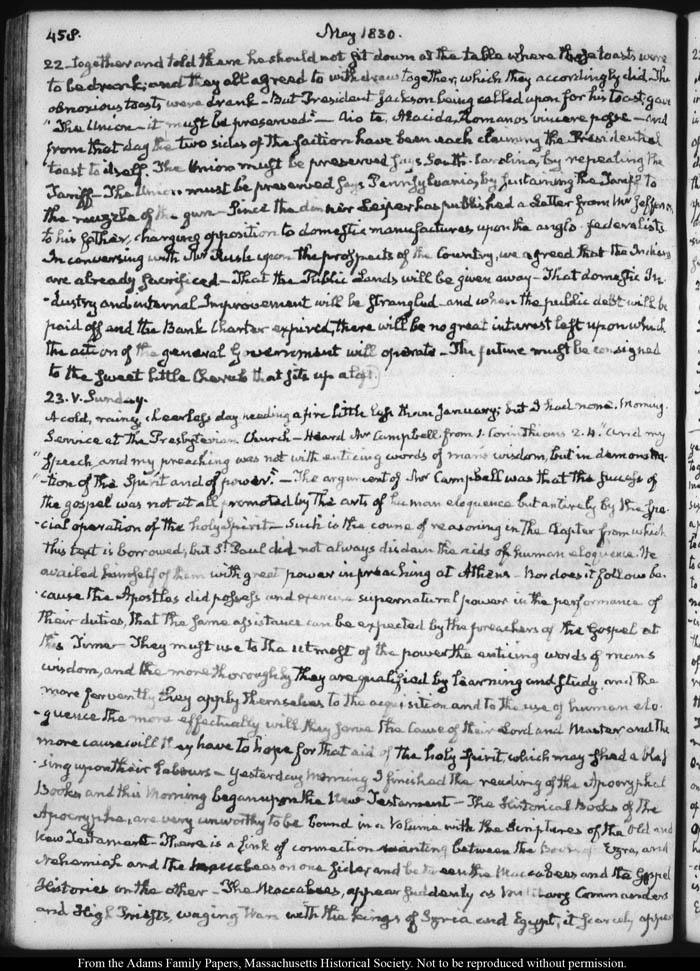 John Quincy Adams diary 36, 1 January 1825 - 30 September 1830, page 458