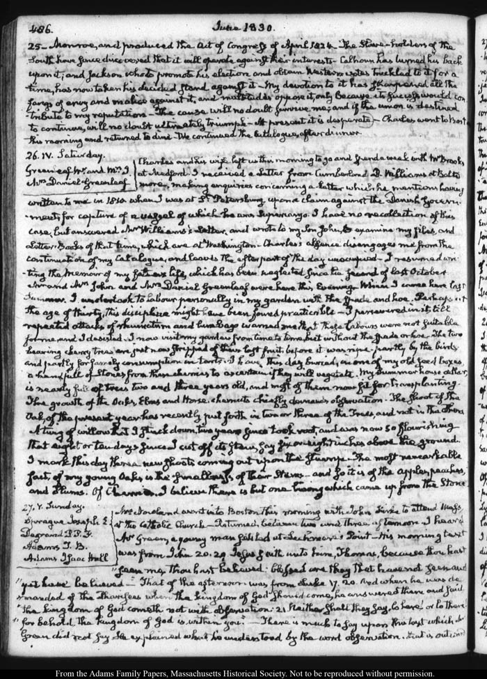 This is our legacy JQA diaries website and allows researchers to view the physical diaries page-by-page.