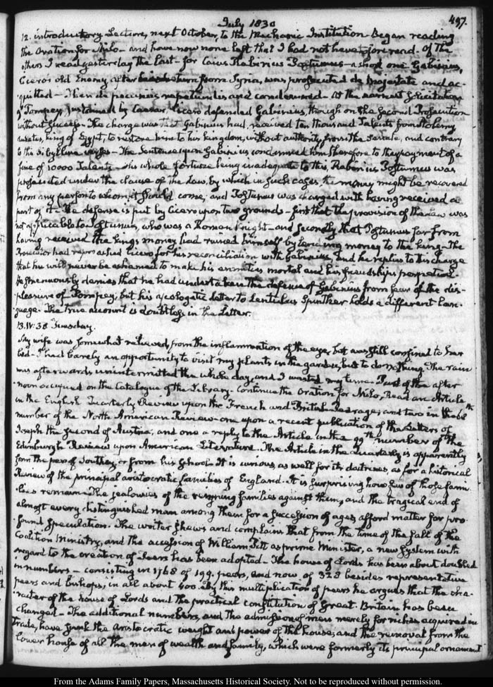 John Quincy Adams diary 36, 1 January 1825 - 30 September 1830, page 497