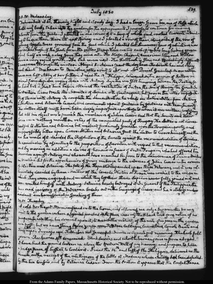 View full, authoritative transcriptions with page images of the diaries at John Quincy Adams Digital Diary part of the Primary Source Cooperative at the MHS.