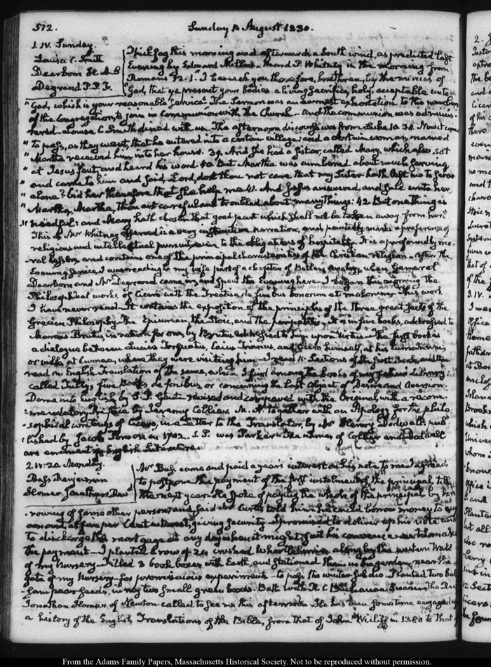 View full, authoritative transcriptions with page images of the diaries at John Quincy Adams Digital Diary part of the Primary Source Cooperative at the MHS.
