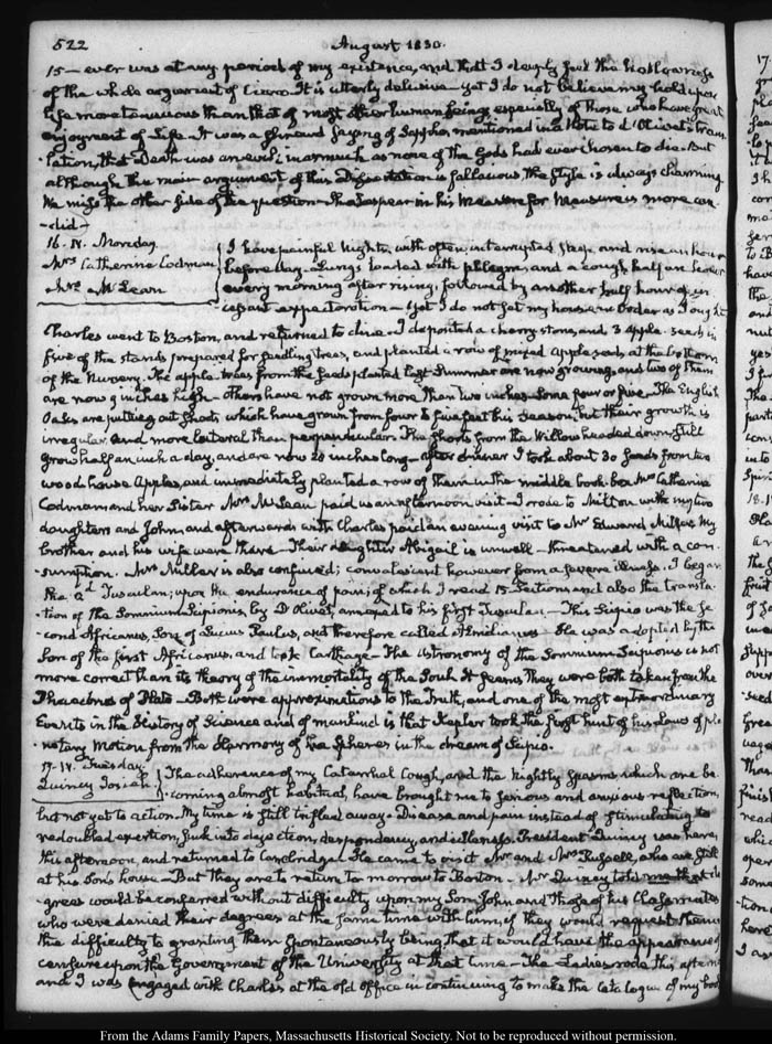 View full, authoritative transcriptions with page images of the diaries at John Quincy Adams Digital Diary part of the Primary Source Cooperative at the MHS.