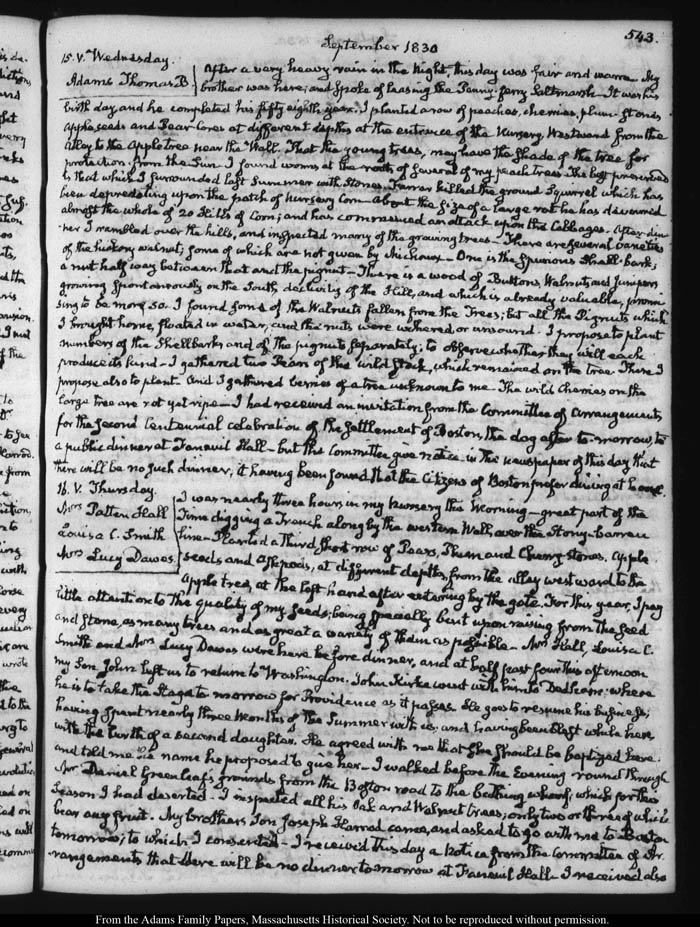 View full, authoritative transcriptions with page images of the diaries at John Quincy Adams Digital Diary part of the Primary Source Cooperative at the MHS.