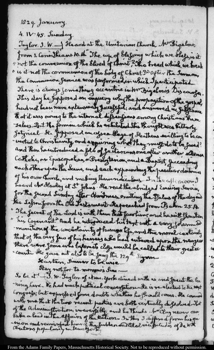 View full, authoritative transcriptions with page images of the diaries at John Quincy Adams Digital Diary part of the Primary Source Cooperative at the MHS.