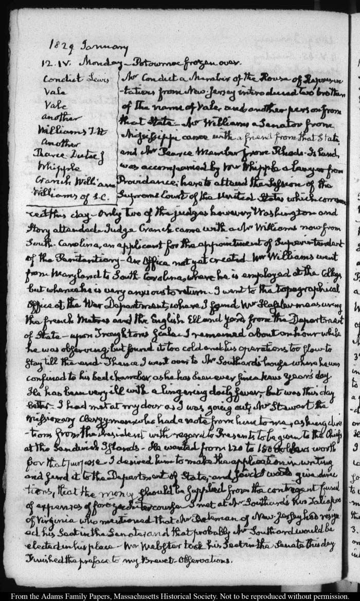 View full, authoritative transcriptions with page images of the diaries at John Quincy Adams Digital Diary part of the Primary Source Cooperative at the MHS.