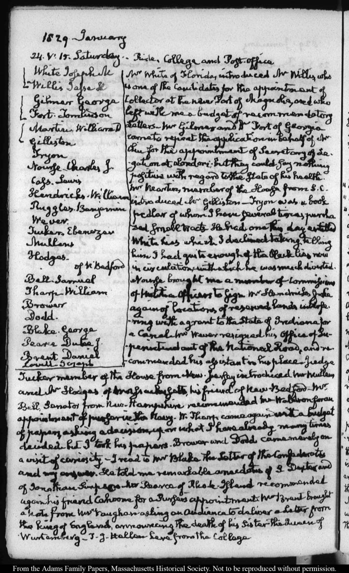 View full, authoritative transcriptions with page images of the diaries at John Quincy Adams Digital Diary part of the Primary Source Cooperative at the MHS.