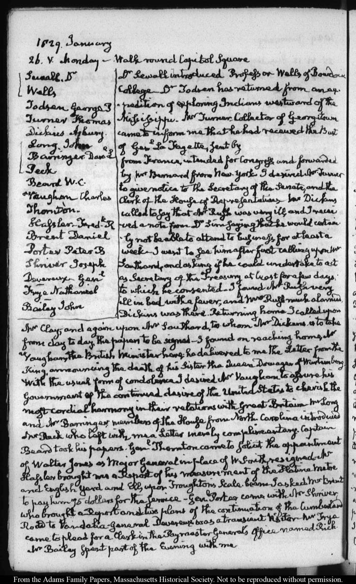 View full, authoritative transcriptions with page images of the diaries at John Quincy Adams Digital Diary part of the Primary Source Cooperative at the MHS.