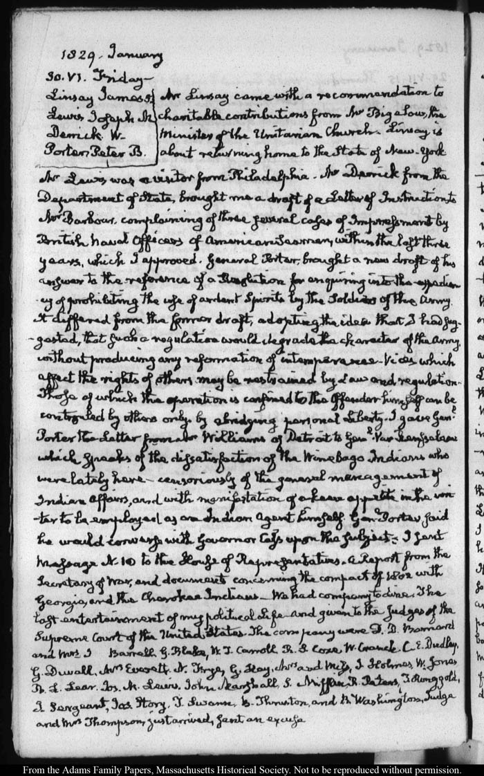 View full, authoritative transcriptions with page images of the diaries at John Quincy Adams Digital Diary part of the Primary Source Cooperative at the MHS.