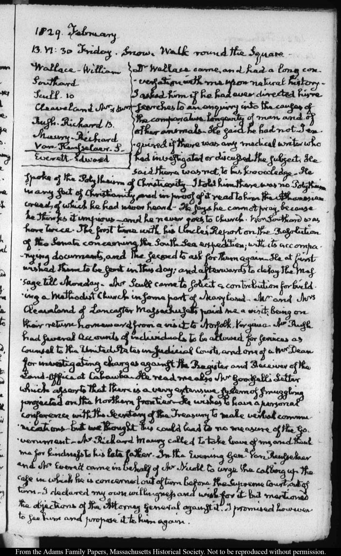 View full, authoritative transcriptions with page images of the diaries at John Quincy Adams Digital Diary part of the Primary Source Cooperative at the MHS.