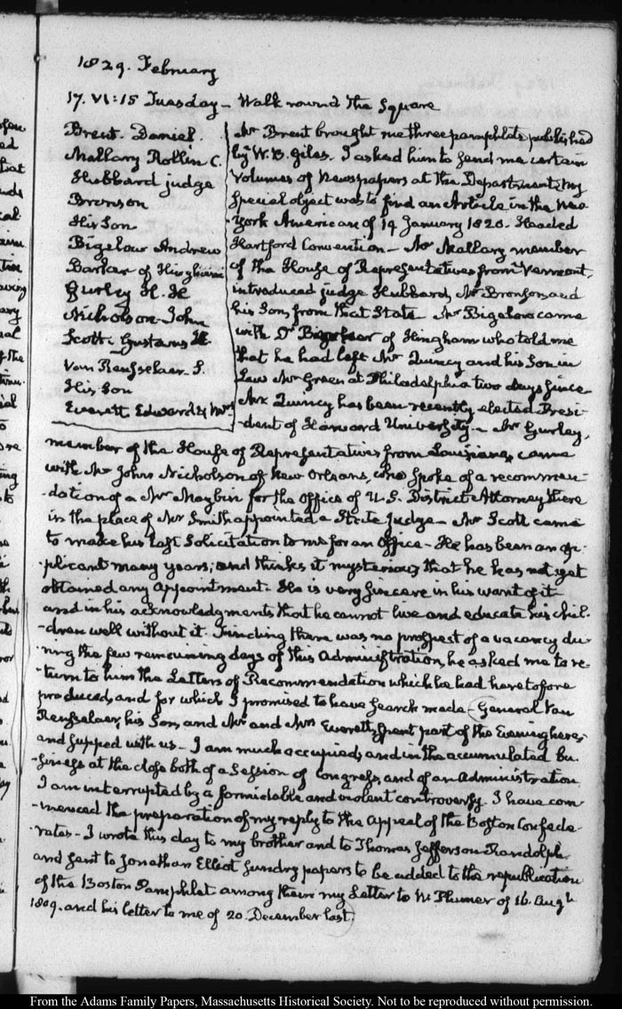 View full, authoritative transcriptions with page images of the diaries at John Quincy Adams Digital Diary part of the Primary Source Cooperative at the MHS.