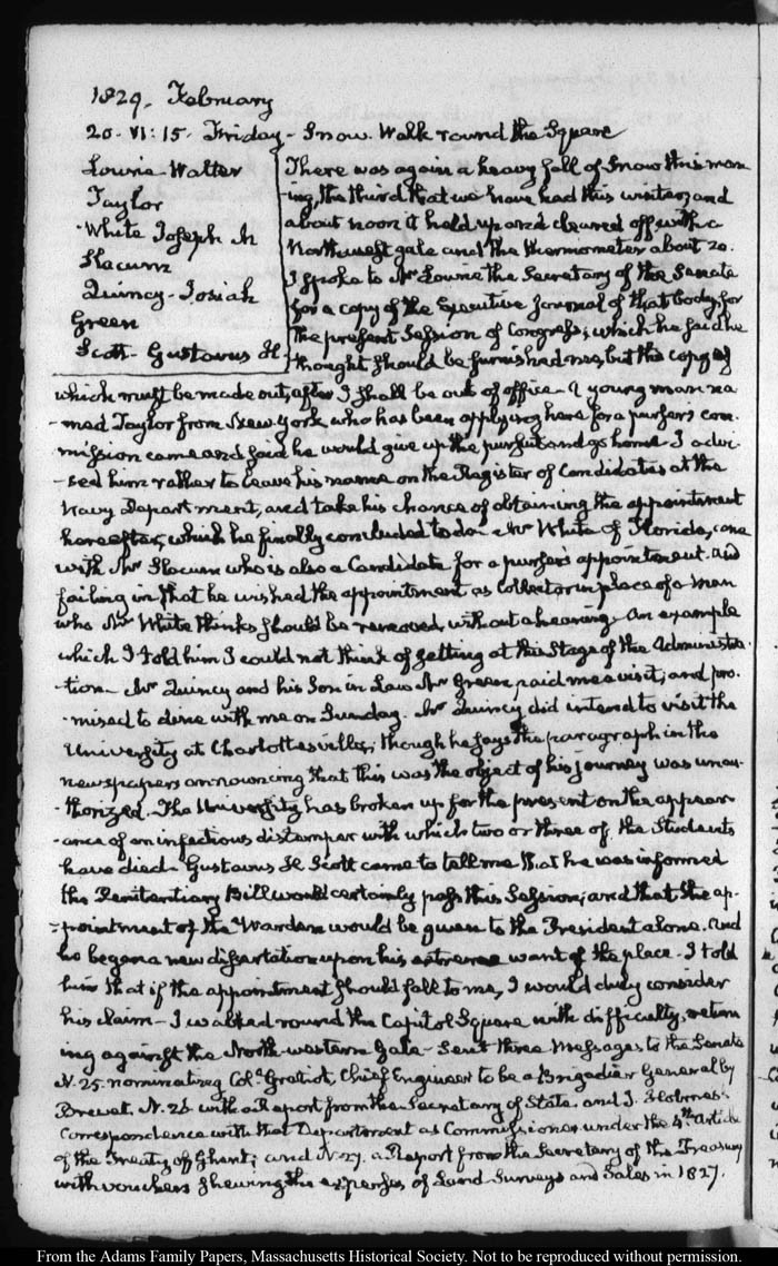View full, authoritative transcriptions with page images of the diaries at John Quincy Adams Digital Diary part of the Primary Source Cooperative at the MHS.