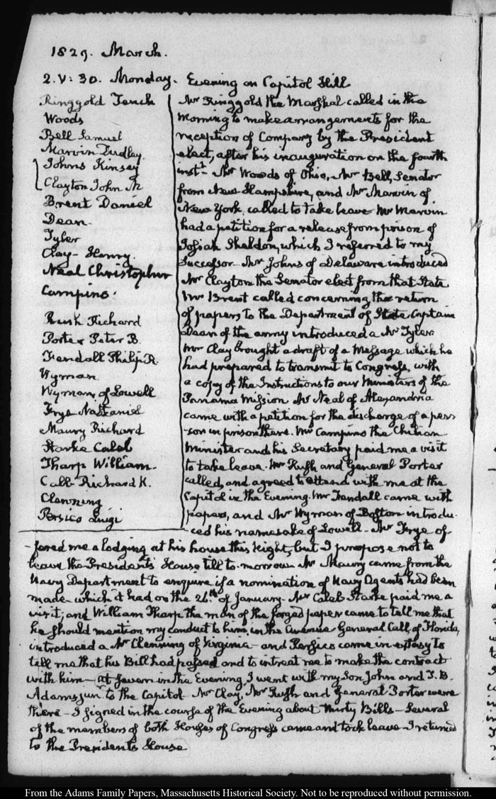 View full, authoritative transcriptions with page images of the diaries at John Quincy Adams Digital Diary part of the Primary Source Cooperative at the MHS.