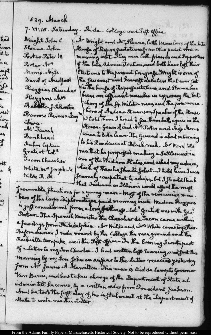 View full, authoritative transcriptions with page images of the diaries at John Quincy Adams Digital Diary part of the Primary Source Cooperative at the MHS.
