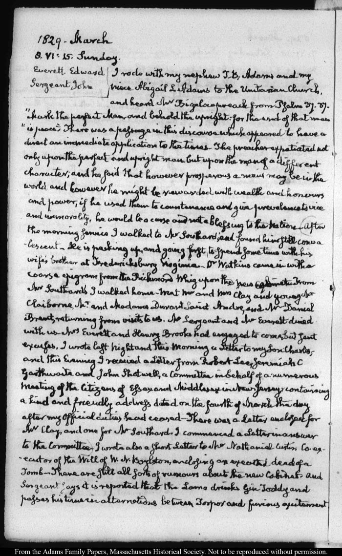 View full, authoritative transcriptions with page images of the diaries at John Quincy Adams Digital Diary part of the Primary Source Cooperative at the MHS.