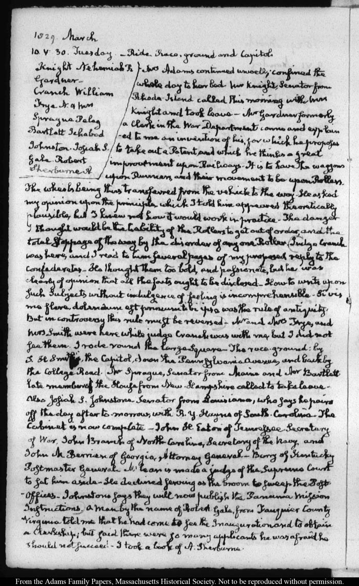 View full, authoritative transcriptions with page images of the diaries at John Quincy Adams Digital Diary part of the Primary Source Cooperative at the MHS.