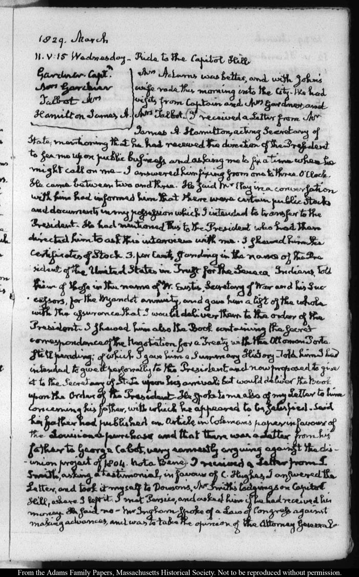John Quincy Adams diary 36, 1 January 1825 - 30 September 1830, insert page 171