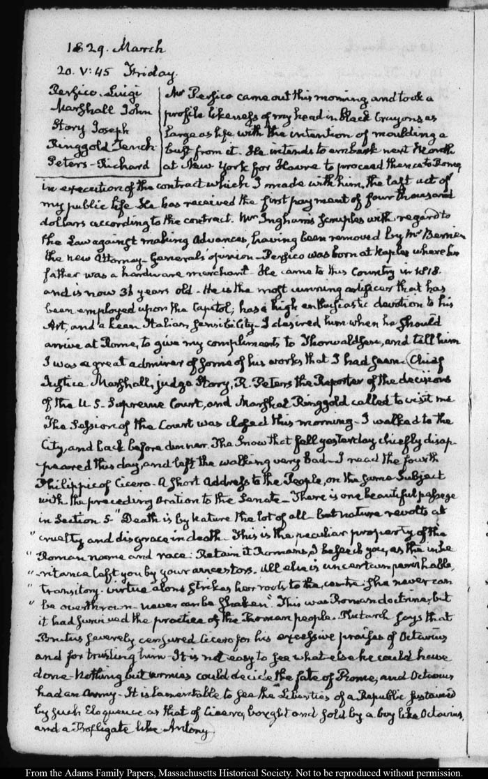 View full, authoritative transcriptions with page images of the diaries at John Quincy Adams Digital Diary part of the Primary Source Cooperative at the MHS.