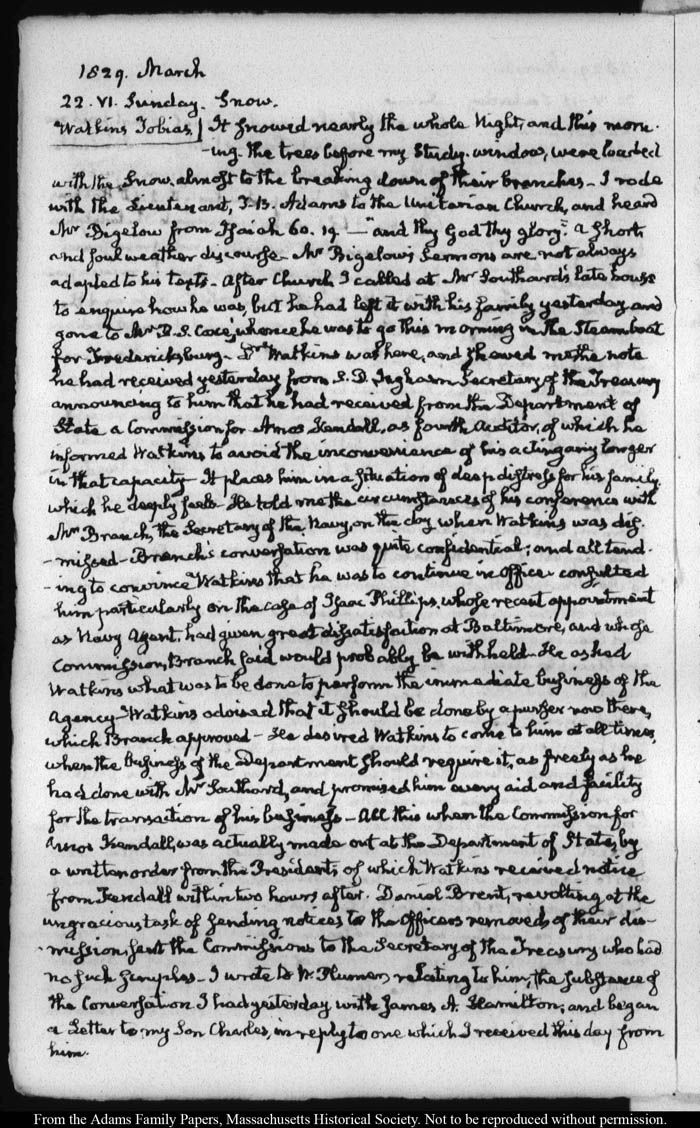 View full, authoritative transcriptions with page images of the diaries at John Quincy Adams Digital Diary part of the Primary Source Cooperative at the MHS.