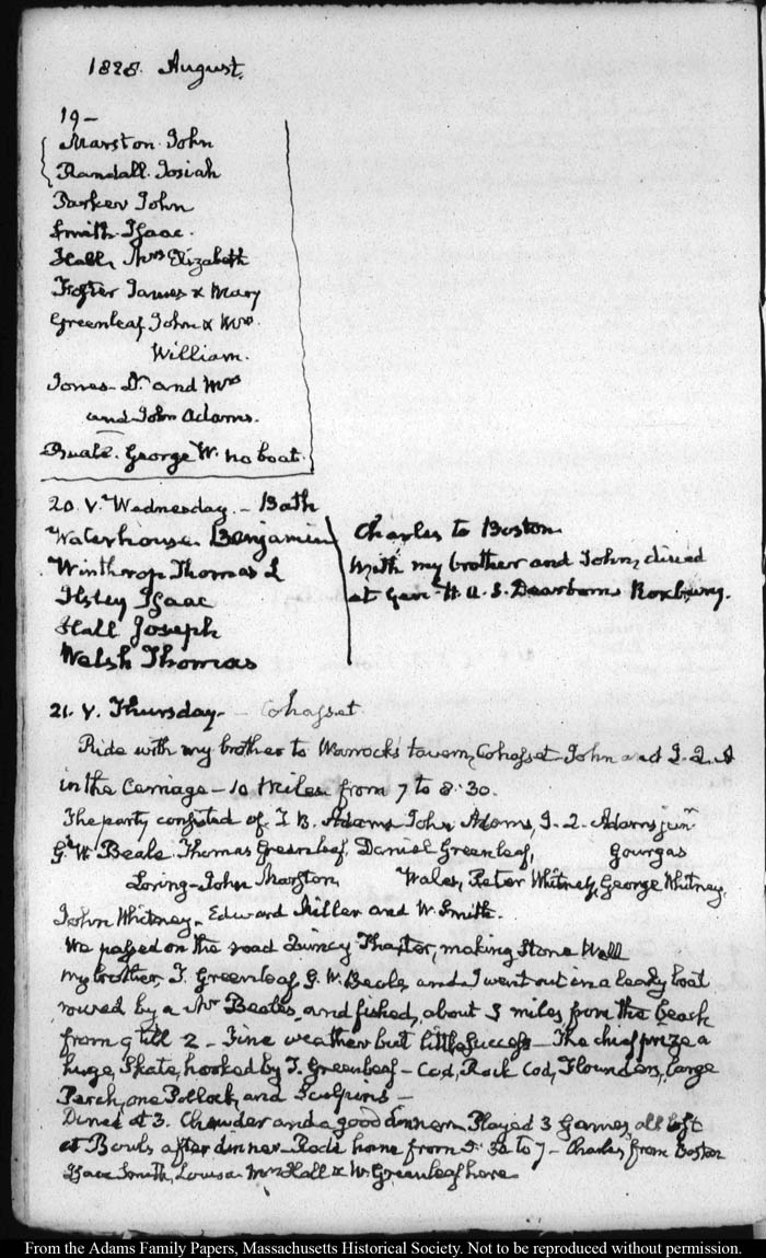 View full, authoritative transcriptions with page images of the diaries at John Quincy Adams Digital Diary part of the Primary Source Cooperative at the MHS.