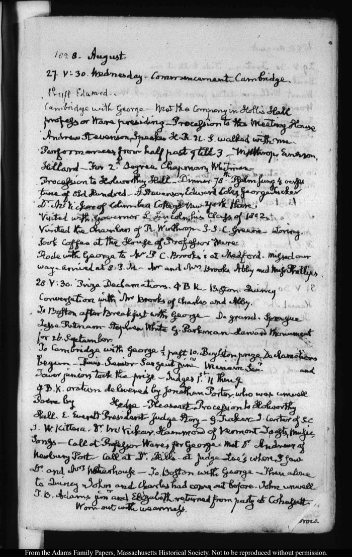 View full, authoritative transcriptions with page images of the diaries at John Quincy Adams Digital Diary part of the Primary Source Cooperative at the MHS.