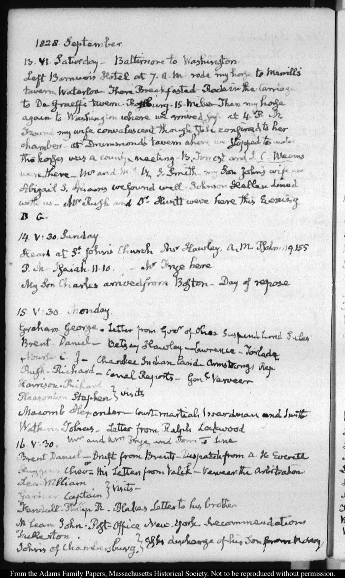 View full, authoritative transcriptions with page images of the diaries at John Quincy Adams Digital Diary part of the Primary Source Cooperative at the MHS.