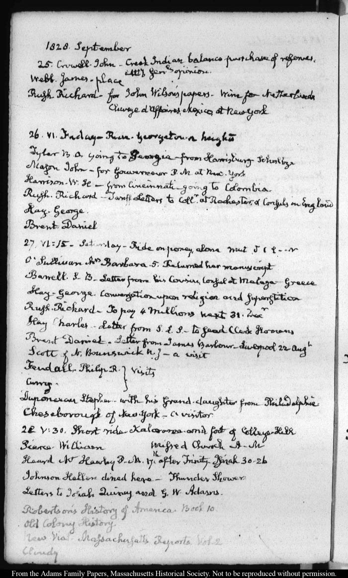 View full, authoritative transcriptions with page images of the diaries at John Quincy Adams Digital Diary part of the Primary Source Cooperative at the MHS.