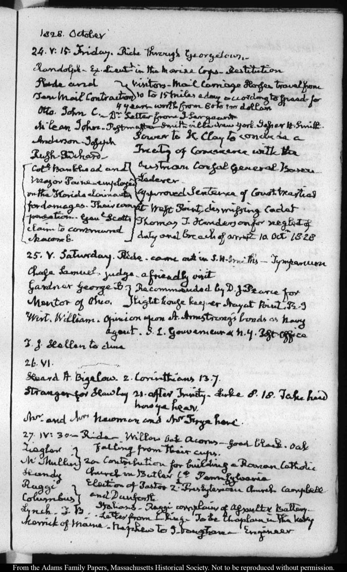 View full, authoritative transcriptions with page images of the diaries at John Quincy Adams Digital Diary part of the Primary Source Cooperative at the MHS.