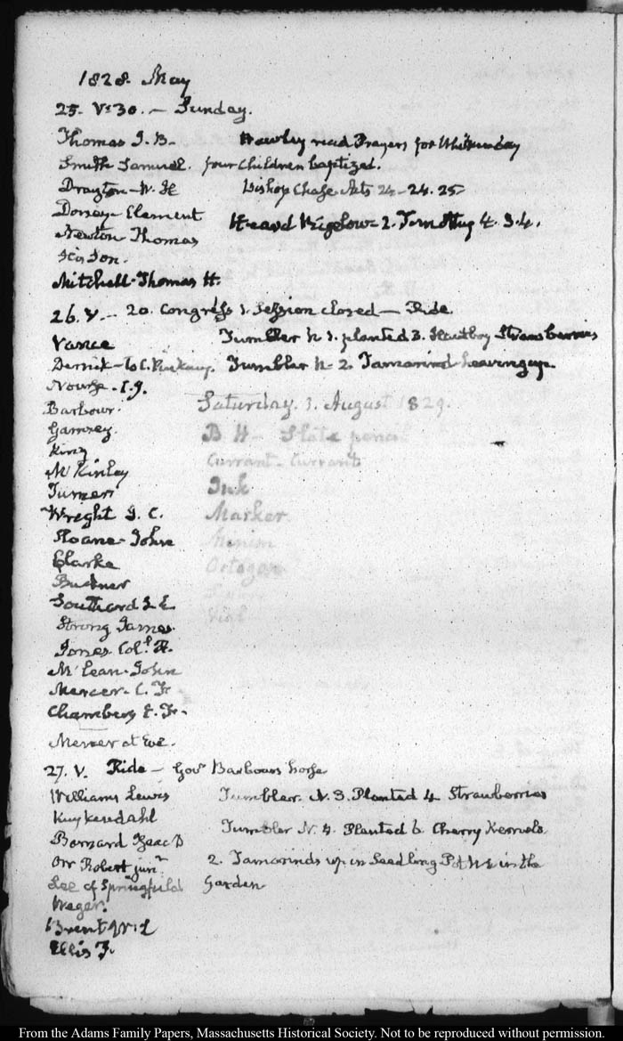 John Quincy Adams diary 36, 1 January 1825 - 30 September 1830, insert