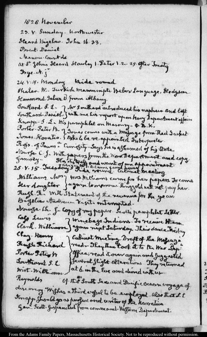 View full, authoritative transcriptions with page images of the diaries at John Quincy Adams Digital Diary part of the Primary Source Cooperative at the MHS.