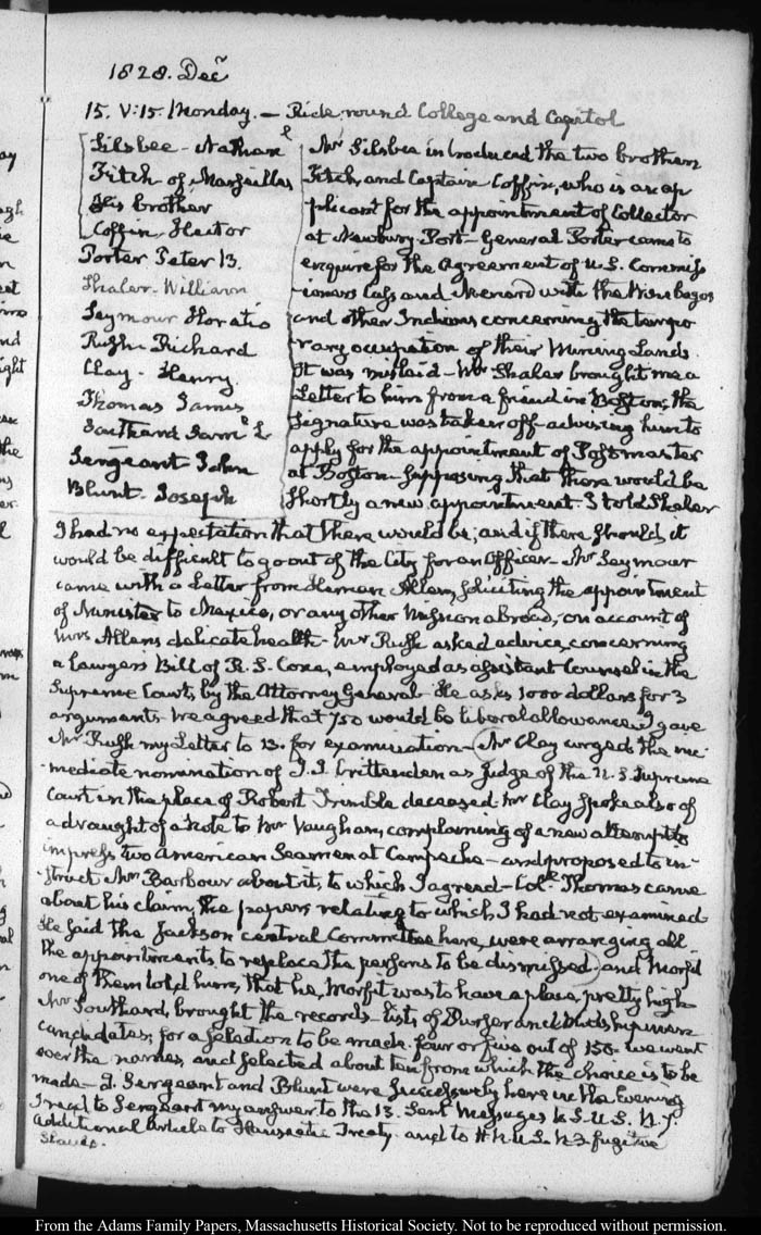 View full, authoritative transcriptions with page images of the diaries at John Quincy Adams Digital Diary part of the Primary Source Cooperative at the MHS.