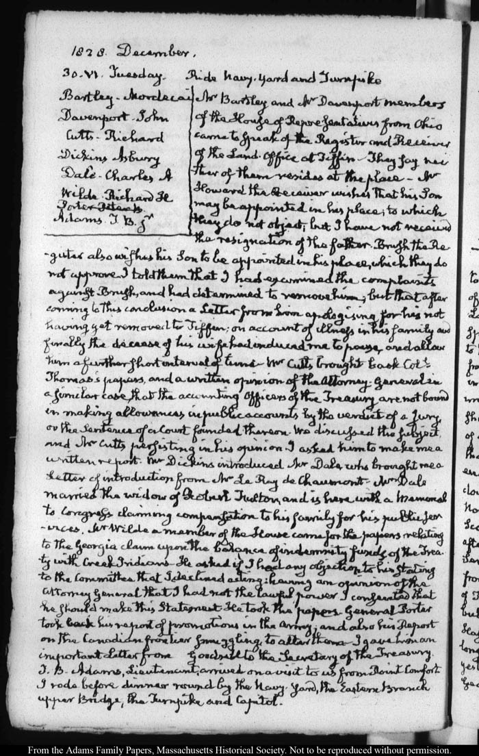 View full, authoritative transcriptions with page images of the diaries at John Quincy Adams Digital Diary part of the Primary Source Cooperative at the MHS.