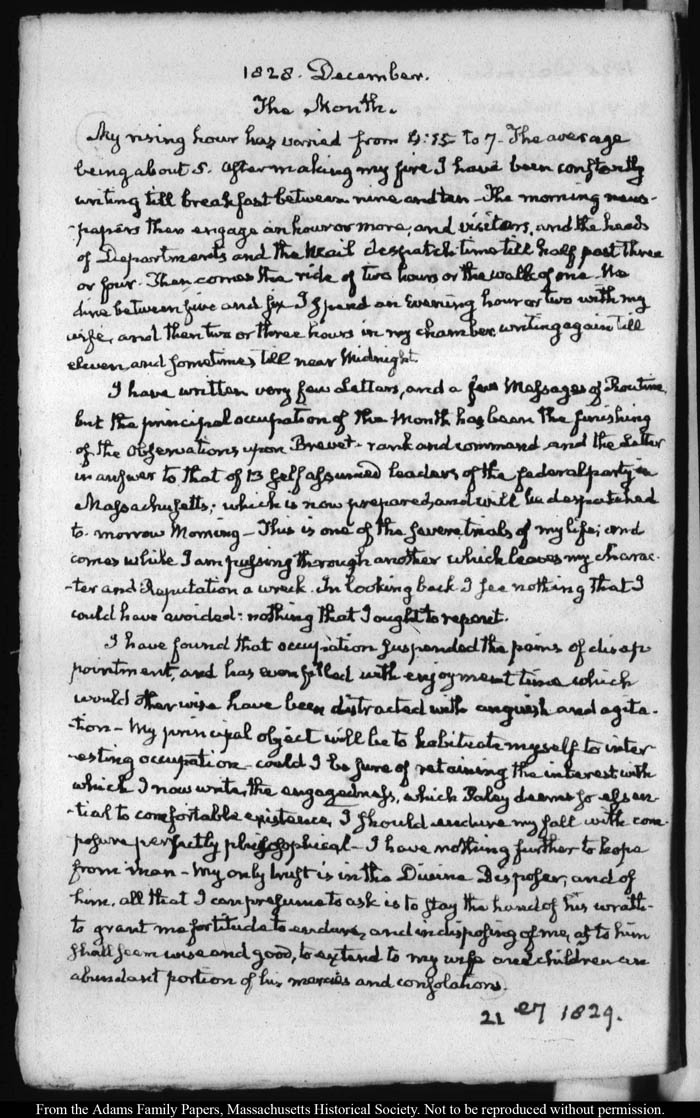 View full, authoritative transcriptions with page images of the diaries at John Quincy Adams Digital Diary part of the Primary Source Cooperative at the MHS.