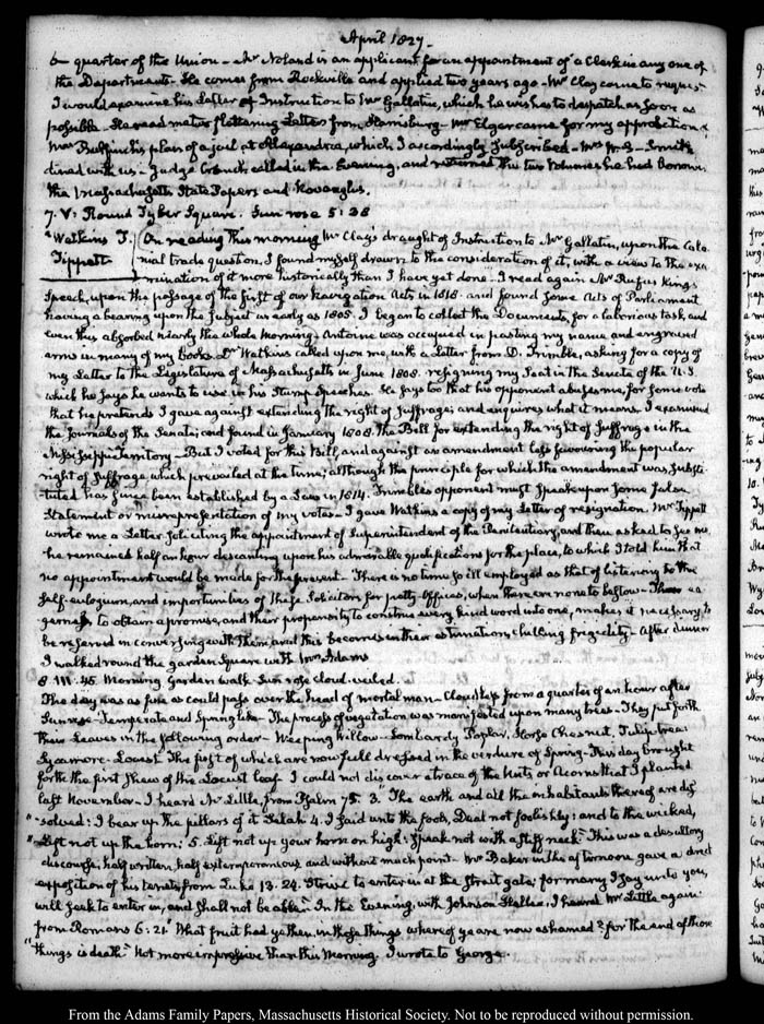 This is our legacy JQA diaries website and allows researchers to view the physical diaries page-by-page.