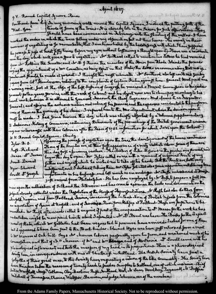 View full, authoritative transcriptions with page images of the diaries at John Quincy Adams Digital Diary part of the Primary Source Cooperative at the MHS.