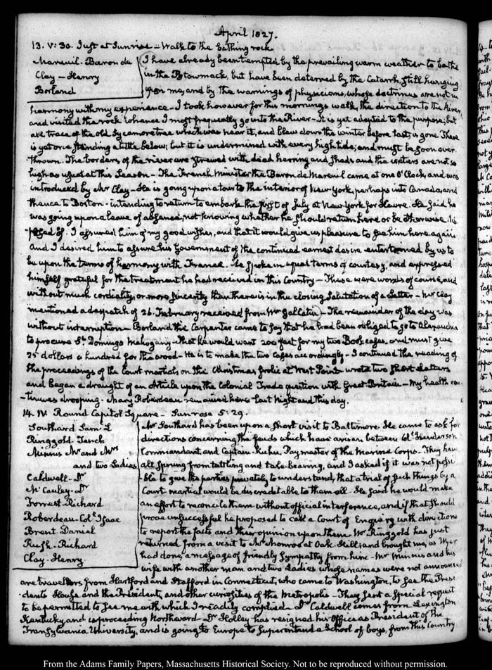 View full, authoritative transcriptions with page images of the diaries at John Quincy Adams Digital Diary part of the Primary Source Cooperative at the MHS.