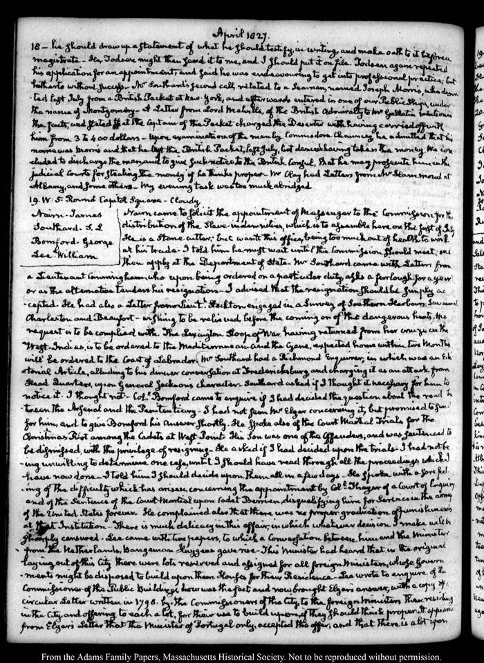 View full, authoritative transcriptions with page images of the diaries at John Quincy Adams Digital Diary part of the Primary Source Cooperative at the MHS.