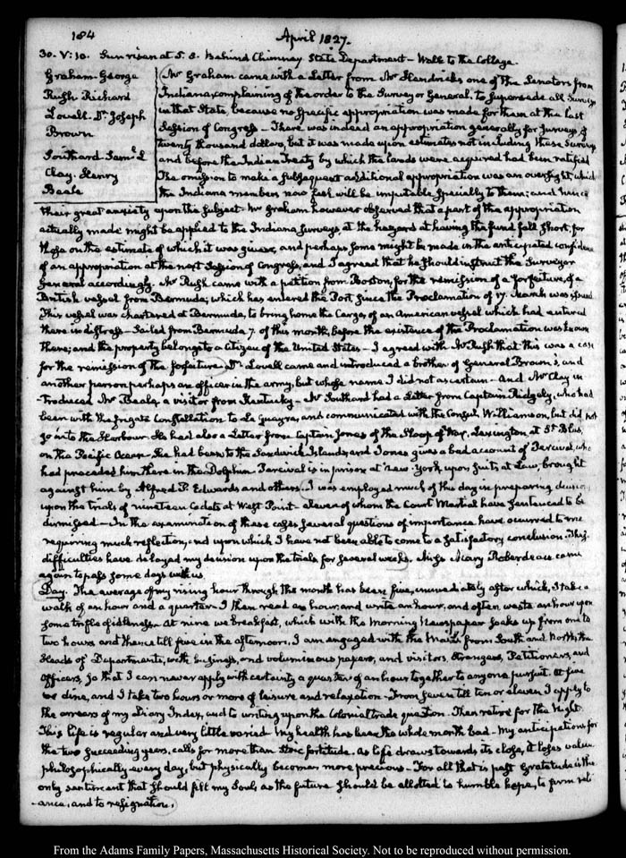 View full, authoritative transcriptions with page images of the diaries at John Quincy Adams Digital Diary part of the Primary Source Cooperative at the MHS.