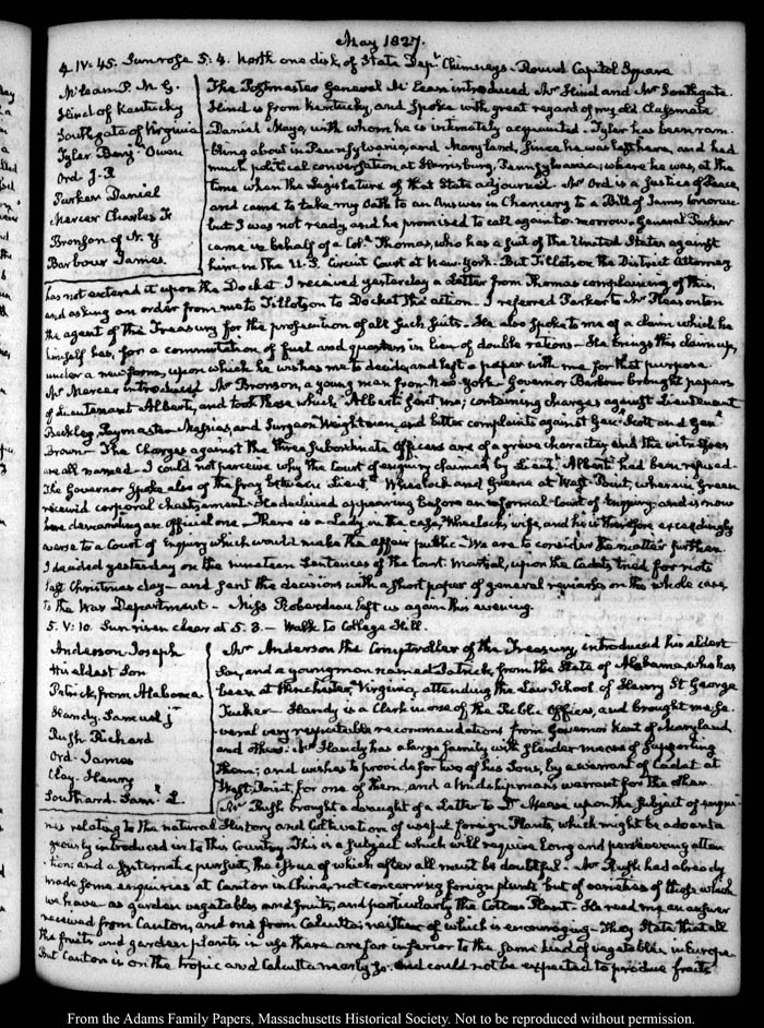 View full, authoritative transcriptions with page images of the diaries at John Quincy Adams Digital Diary part of the Primary Source Cooperative at the MHS.