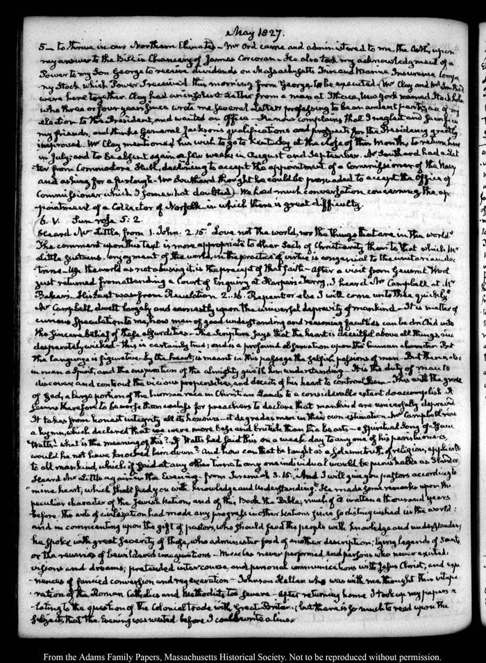View full, authoritative transcriptions with page images of the diaries at John Quincy Adams Digital Diary part of the Primary Source Cooperative at the MHS.