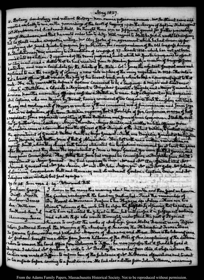 View full, authoritative transcriptions with page images of the diaries at John Quincy Adams Digital Diary part of the Primary Source Cooperative at the MHS.