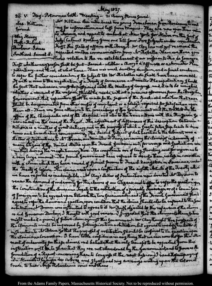 View full, authoritative transcriptions with page images of the diaries at John Quincy Adams Digital Diary part of the Primary Source Cooperative at the MHS.
