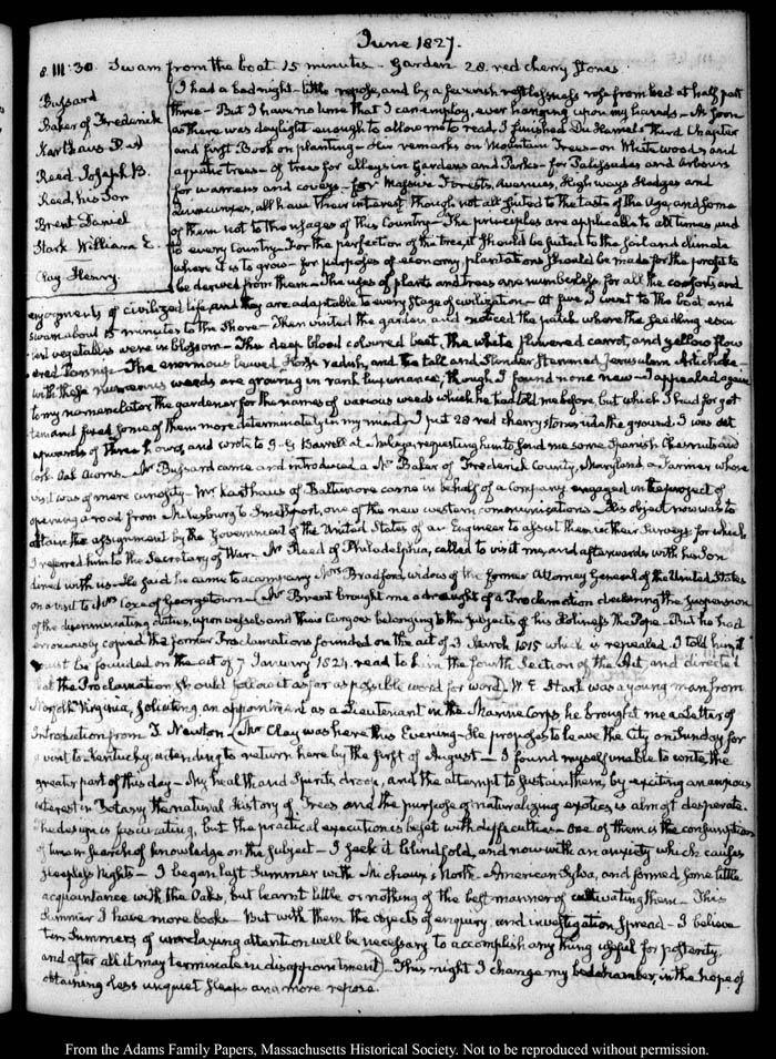 View full, authoritative transcriptions with page images of the diaries at John Quincy Adams Digital Diary part of the Primary Source Cooperative at the MHS.